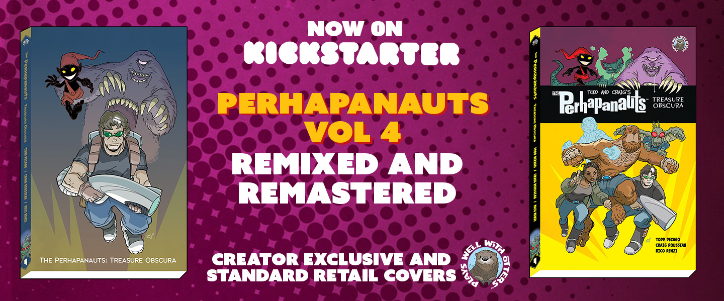 hey, we’re updating the old blog like it’s 10 years ago! and the reason for firing it up? a NEW kickstarter!! that’s right, we’re crowd funding the PLAYS WELL WITH OTTERS self-published REMIXED and REMASTERED volume 4 of THE PERHAPANAUTS… TREASURE OBSCURA! long out of print, this new edition is a pretty radical new version, […]